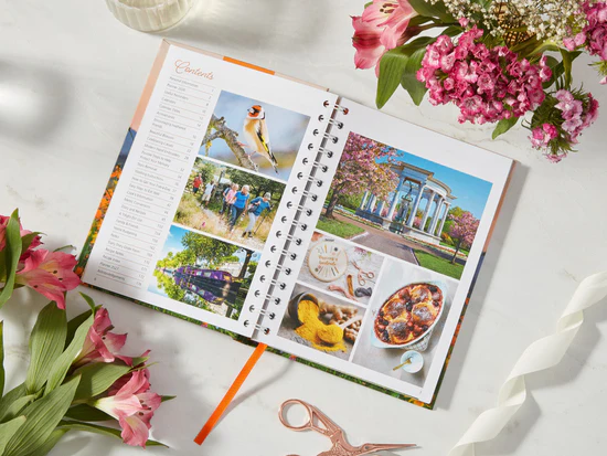 Concealed wiro-binding for lie-flat writing. Stickers to customise dates. Handy notes pocket.